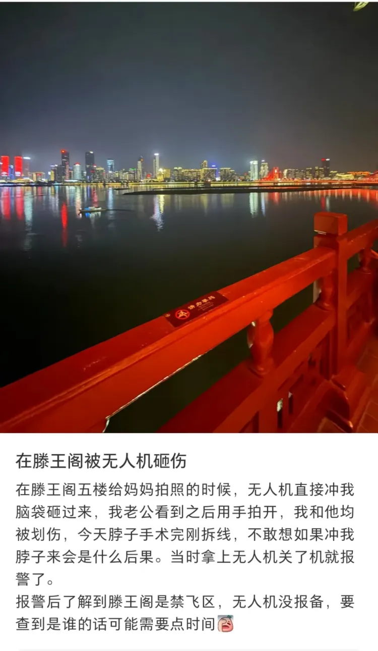 游客在滕王阁遭无人机划伤,景区是否禁飞成争议?最新回应:警方正追查肇事机主